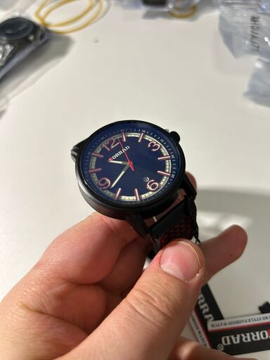 Diese exklusive Edition besticht durch ein tiefschwarzes Zifferblatt mit reinweißen Akzenten und feurigen roten Zeigern. Das minimalistische Design zeigt lediglich die Ziffern 3, 6, 9 und 12. Gefertigt aus robustem, schwarz beschichtetem Edelstahl und veredelt mit einem seltenen Belly-Lederarmband.