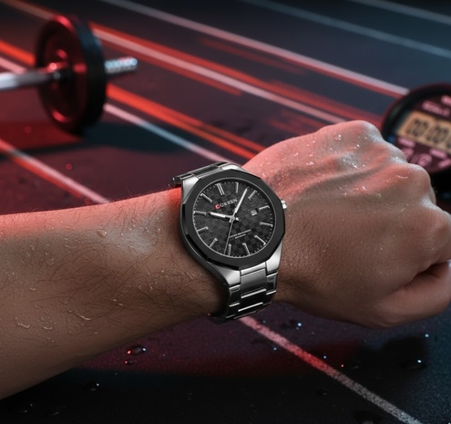 Inspiriert von luxuriösen Performance-Uhren steht dieser Zeitmesser für Eleganz, Stärke und Präzision. Ein stilvolles Accessoire für Männer, die Qualität und zeitlose Ästhetik schätzen.